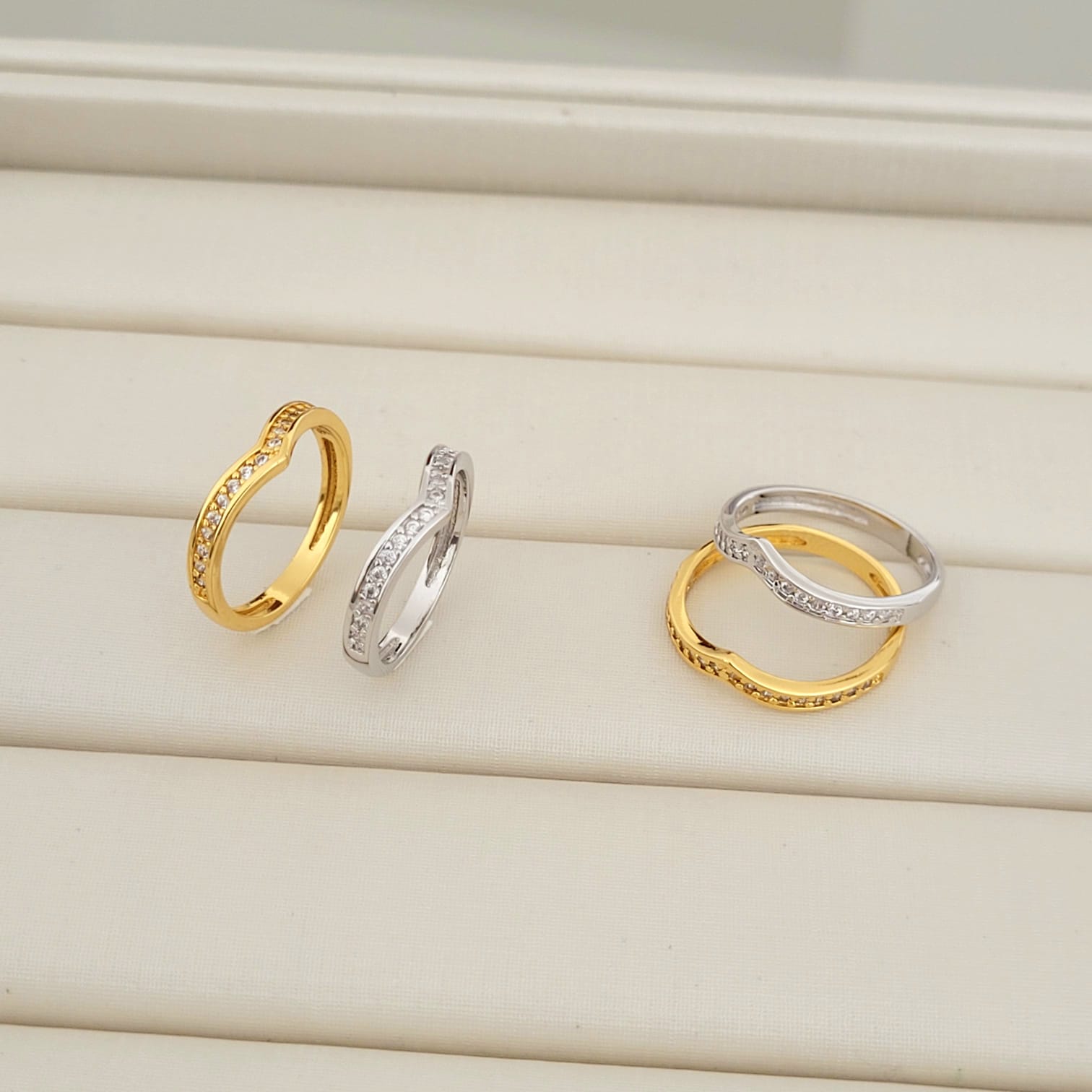 Realce o seu visual com o Anel V c/ Zircônia moderno e estiloso. Ideal para ser usado sozinho ou em composições com outros anéis, este acessório é perfeito para quem busca um toque de glamour.