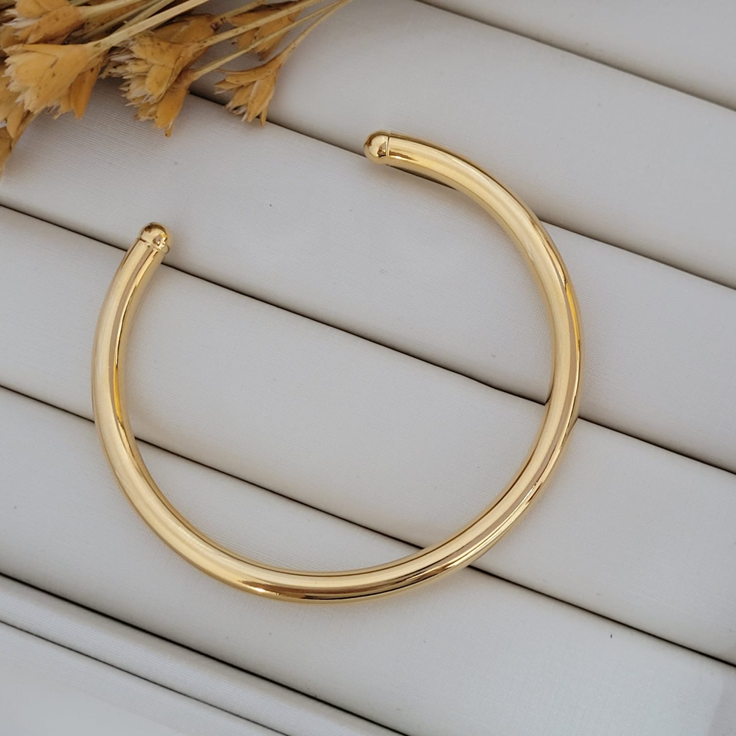 O Bracelete Tubo Liso proporciona um visual minimalista e sofisticado, ideal para mulheres que buscam um acessório versátil e cheio de estilo