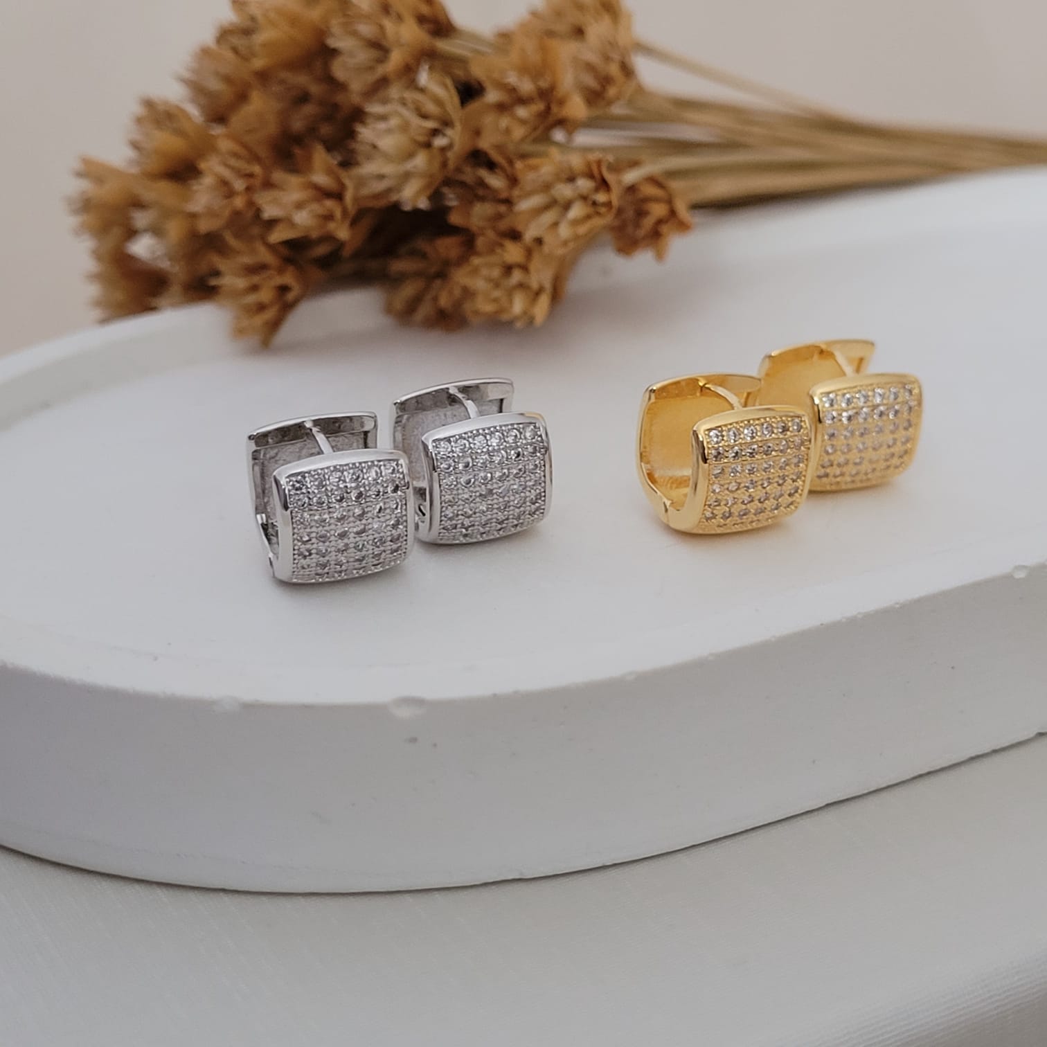 O Brinco Argola Quadrada Cravejada é uma peça moderna e elegante, sendo uma escolha sofisticada para complementar diversos looks, tanto para ocasiões especiais quanto para o uso diário.