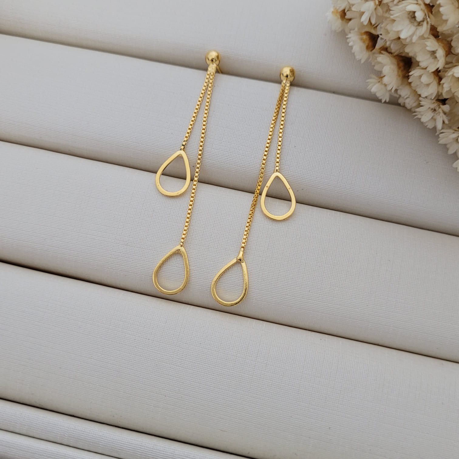O Brinco Gota Vazada Duplo Longo é uma peça moderna e sofisticada, com um design elegante e um toque de ousadia. Cria um visual impactante e versátil que pode ser usado em diversas ocasiões e com diferentes.