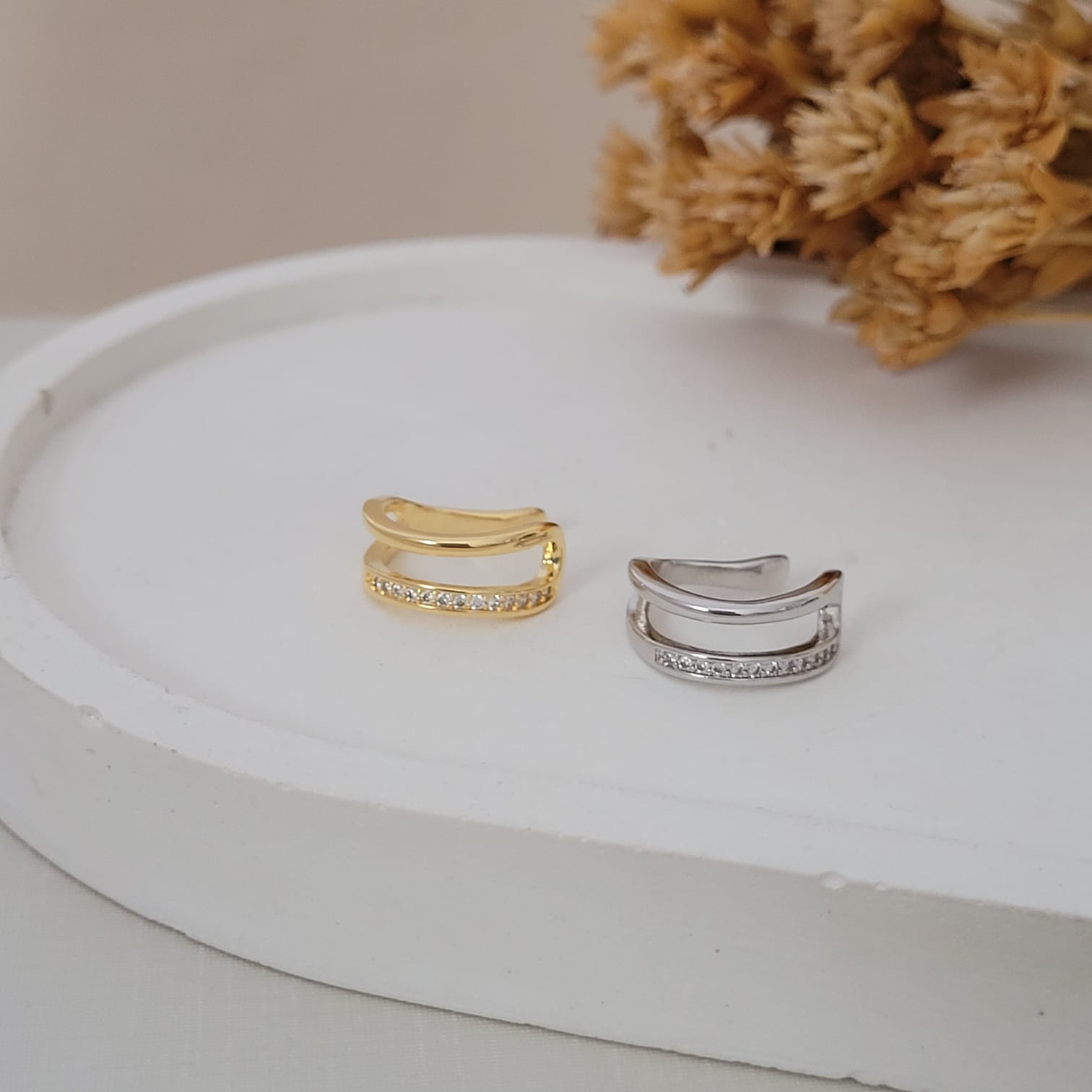 O Brinco Piercing Fake Duplo com Zircônia é uma peça Moderna, ideal para dar um toque de Estilo e brilho ao Visual