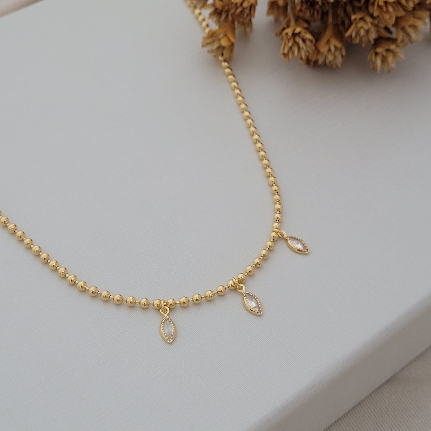 O Colar Bolinha com Gotinhas de Zircônia é uma peça encantadora e delicada, adicionando um toque de sofisticação a qualquer visual
