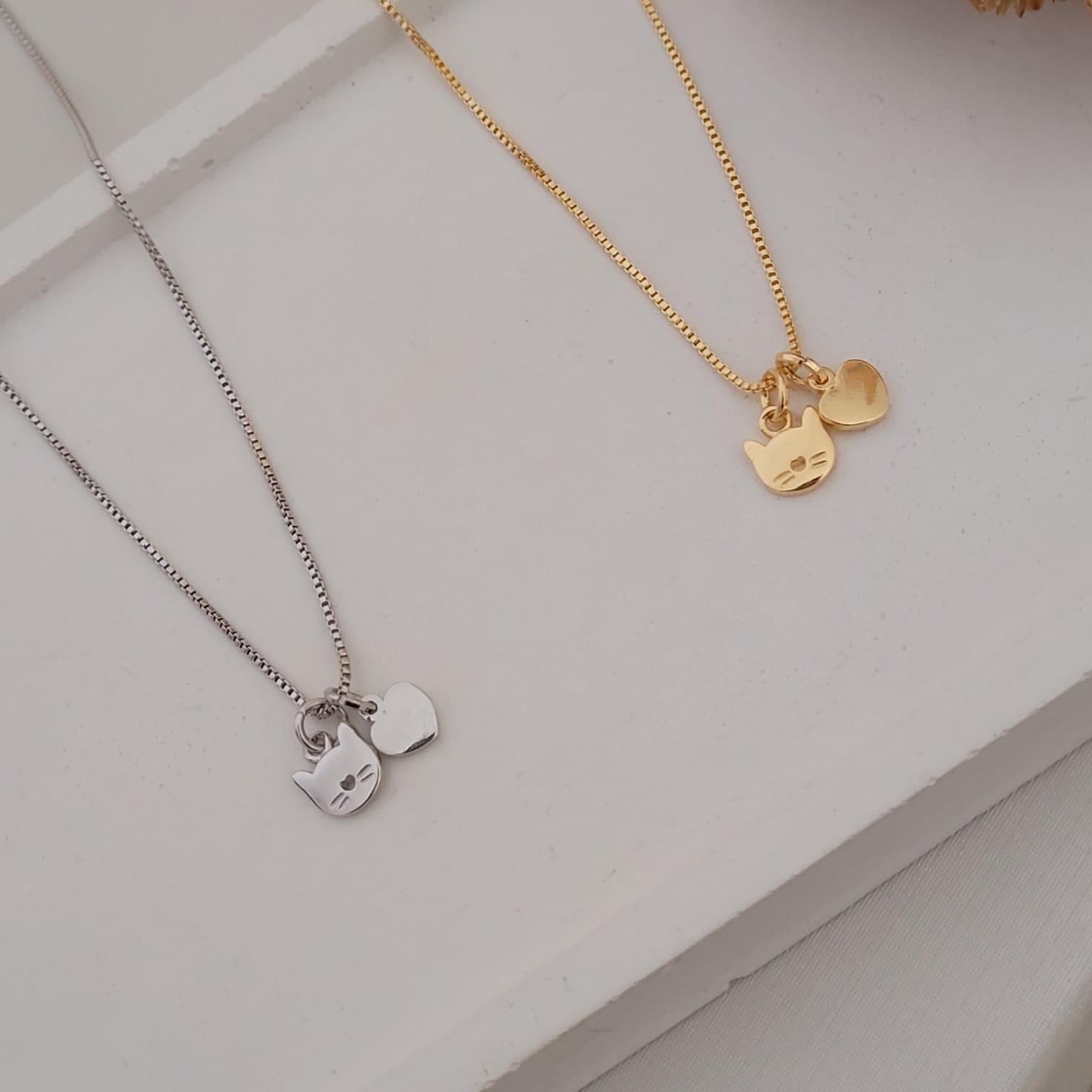 O colar Coração e Gatinho é uma peça delicada que simboliza o amor e afeto aos seus animais de estimação.