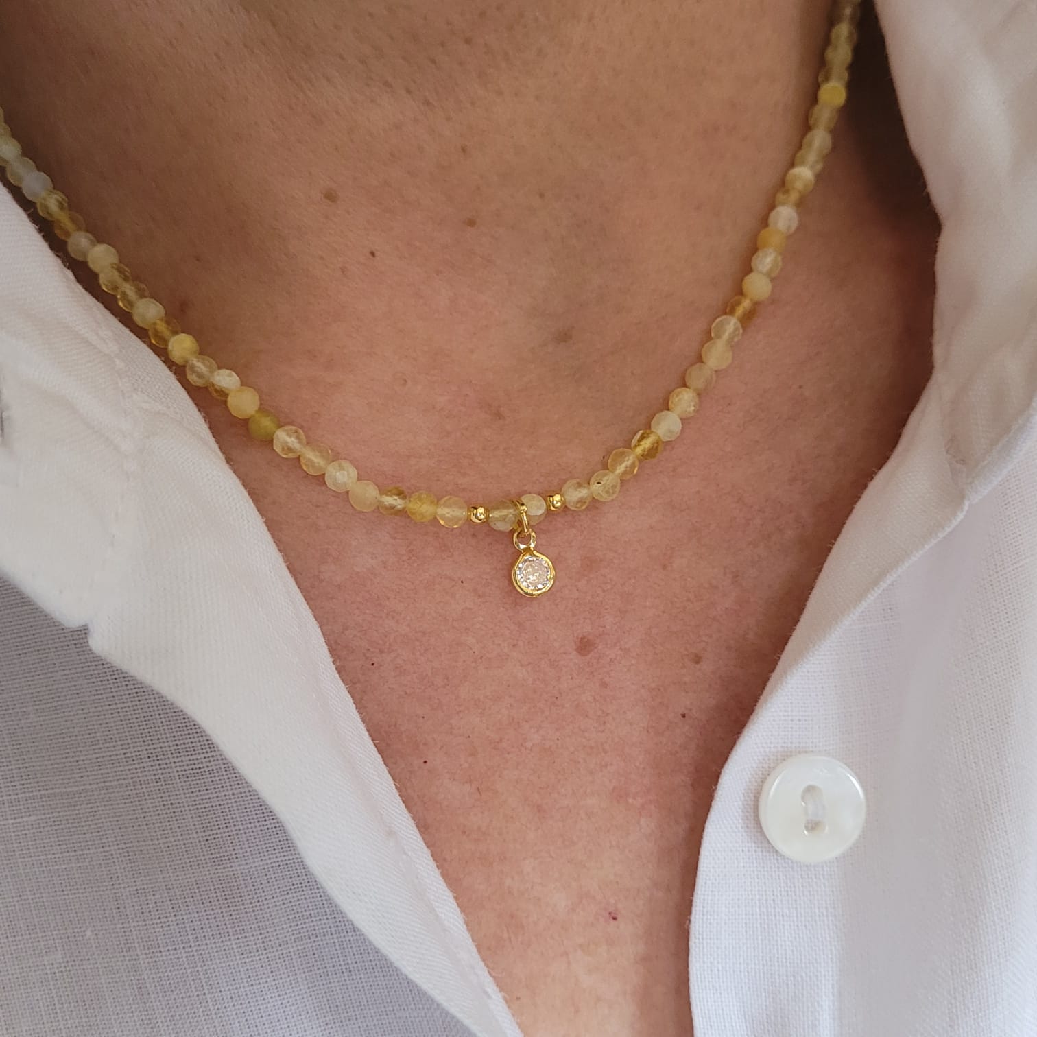 Encante-se com o Colar de Pedras Naturais 3MM com Ponto de Luz . Este colar é perfeito para mulheres que valorizam acessórios únicos e elegantes, sendo ideal para qualquer ocasião