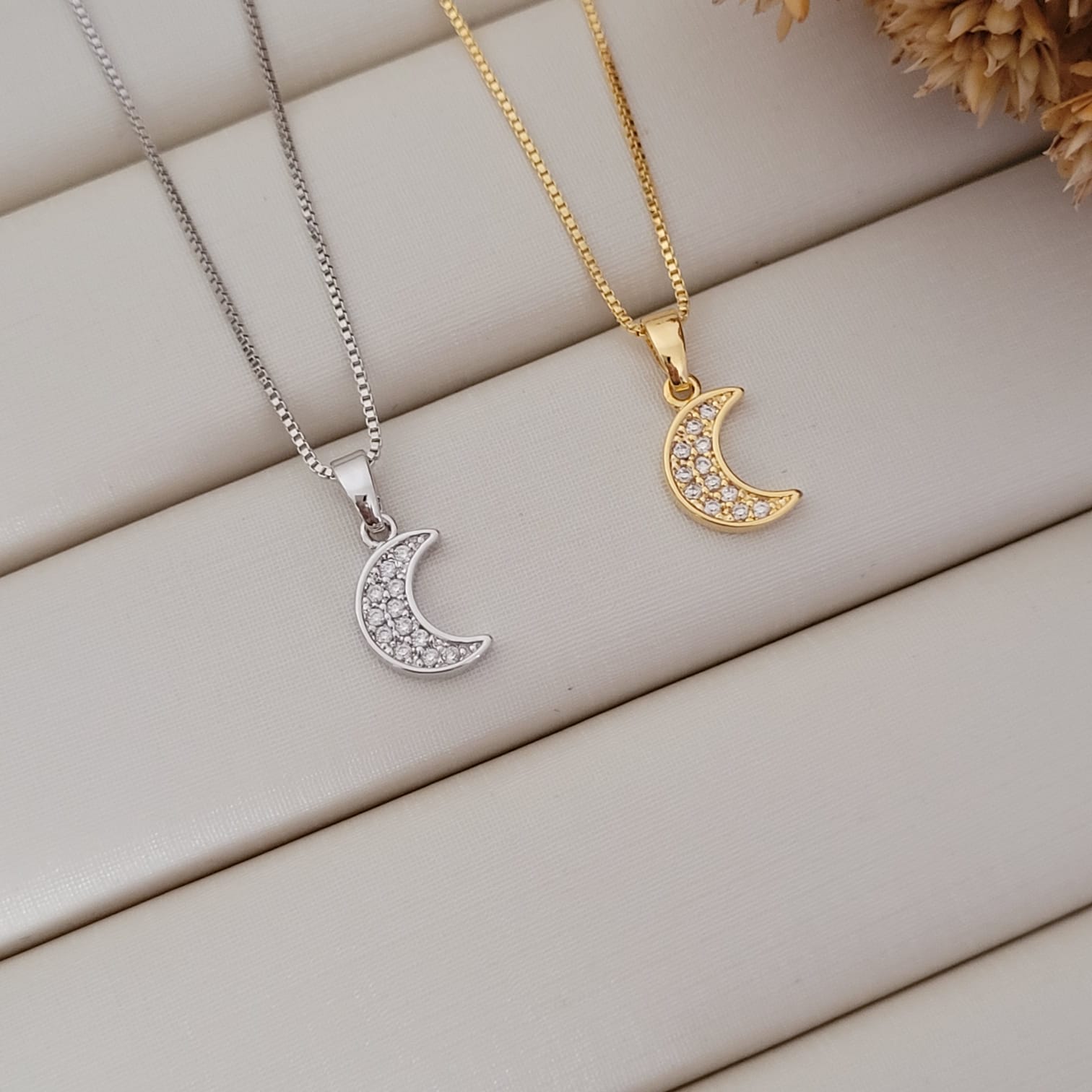 O Colar Lua com Zircônia é uma peça sofisticada e encantadora. Este colar apresenta um pingente em formato de lua crescente, um símbolo que frequentemente representa feminilidade, intuição e renovação.