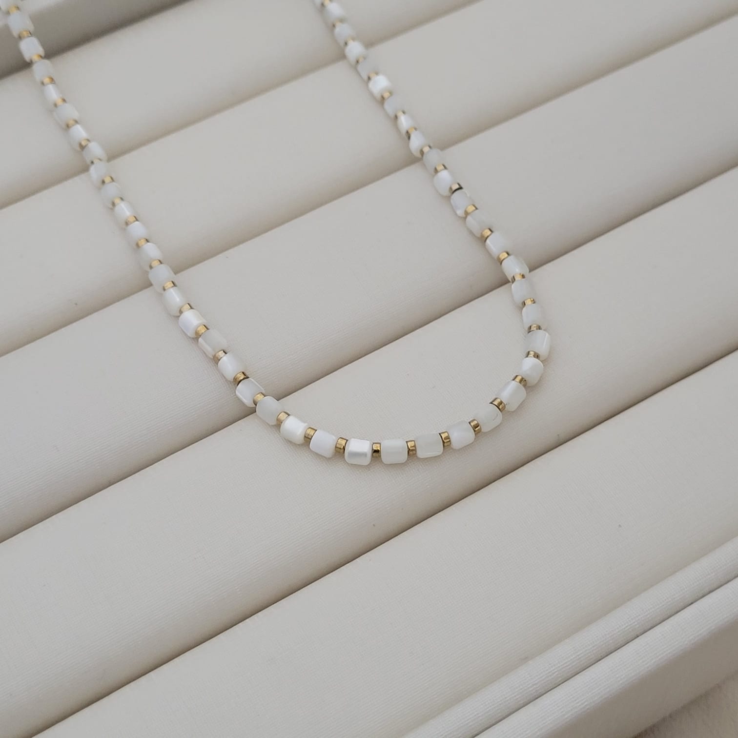 O Colar Madrepérola com Hematita é um acessório com design versátil que permite que seja usado em diversas ocasiões, desde eventos casuais até momentos mais formais. Ideal para complementar qualquer look.