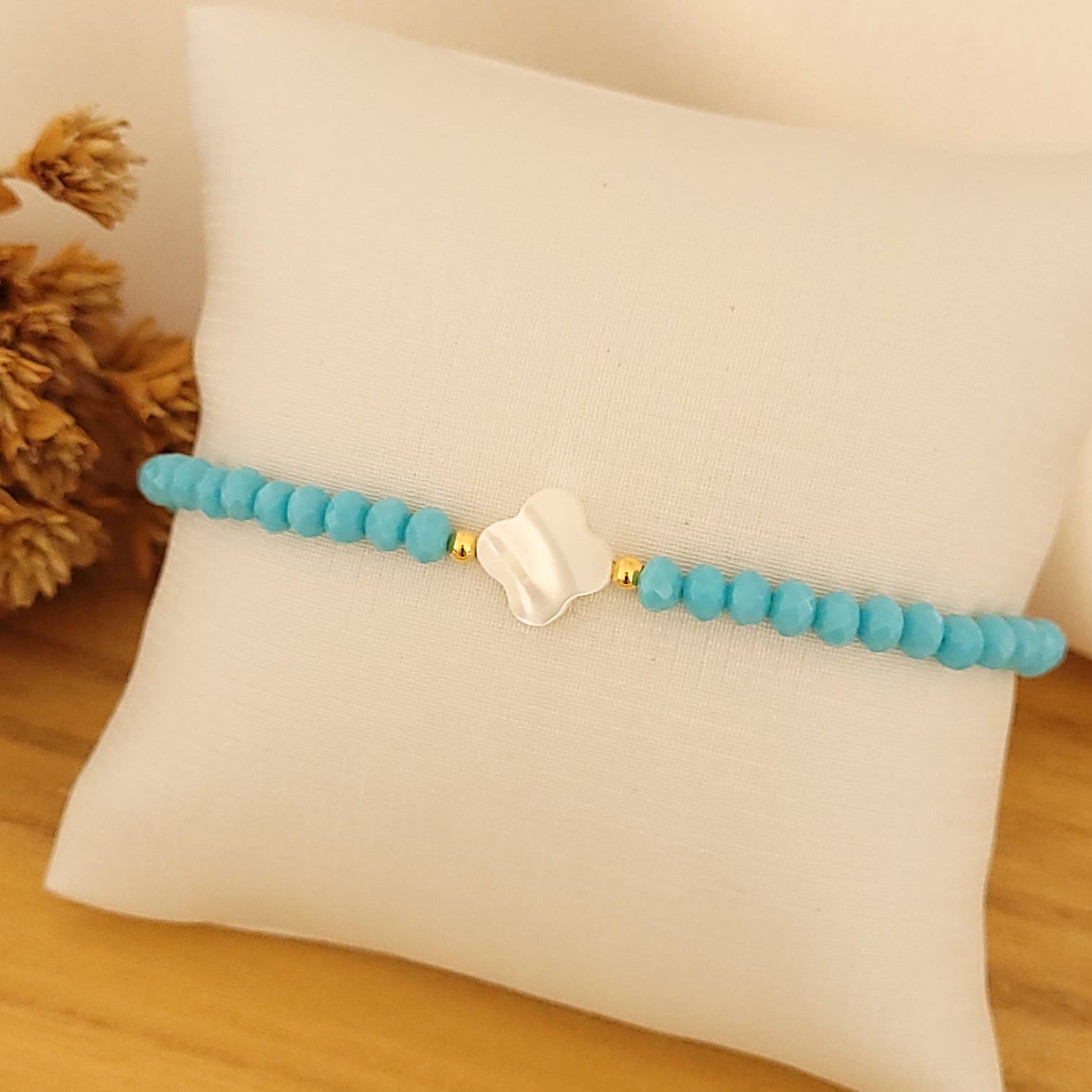 A Pulseira de Cristais 4mm c/ Trevo de Madrepérola é uma peça delicada e versátil, que combina elementos de brilho, elegância e simbolismo. Perfeita para qualquer ocasião.